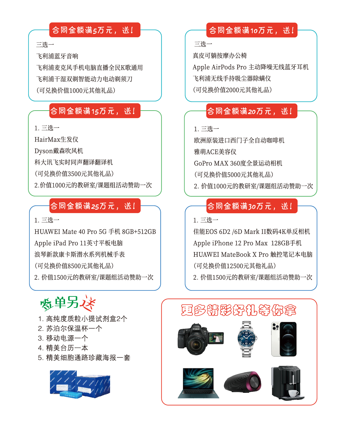 2、各档礼品不叠加赠送,对应礼品可兑换等值服务或其他礼品;