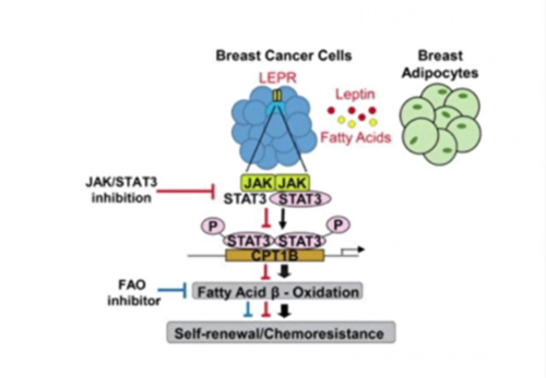STAT3信号转导通路既可以促进脂肪酸β的氧化,维持肿瘤细胞自我增殖与化疗抵抗,还可以促进糖类的摄取,促进细胞增殖。刘教授向我们介绍了中药提取物杠柳疳元靶向STAT3从而抑制食管癌(ESCC)的增殖。