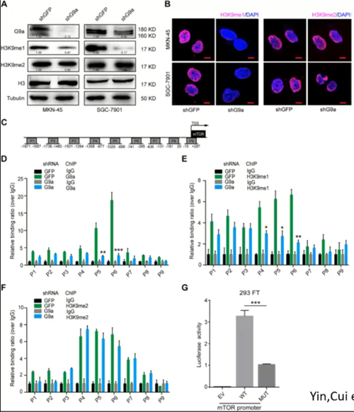 组蛋白H3K9甲基转移酶G9a可调控mTOR转录进而抑制胃癌自噬